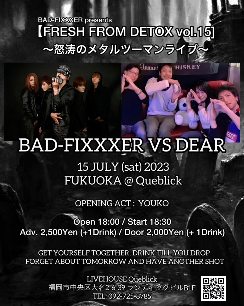 OPEN 18:00 START 18:30Live Charge Adv. 2,500yen(+1Drink) / Door 2,000yen(+1Drink)PLACE:Queblick福岡市中央区大名2-6-39 ランディックビルB1FTEL:092-725-8785